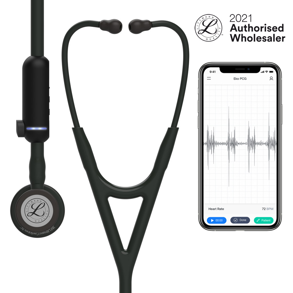 The Littmann® CORE Digital Stethoscope features the outstanding acoustics, comfort and quality of a Littmann cardiology-grade stethoscope enhanced by powerful digital technology. Features like up to 40x amplification and active noise cancellation can help you auscultate with greater confidence. The Littmann® CORE Stethoscope connects with Eko software on a smart device to visualize, record and share data.